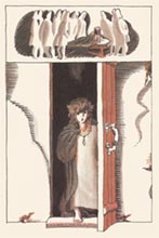 В полутёмной каморке, освещённой пламенем красной свечи, хозяин мельницы предлагает сироте Крабату сделаться его подмастерьем. «Чему тебя учить? Молоть зерно или ещё чему другому?» — спрашивает Мастер. «Другому тоже», — отвечает Крабат. Он догадывается, что «другое» — это чёрная магия.