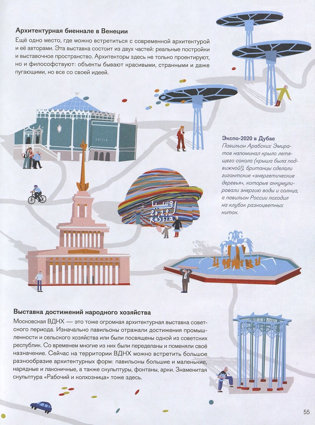 Внутри архитектурной профессии множество направлений. Архитектор может проектировать дома или мосты, целые города или маленькие парки, придумывать внешний дизайн или внутренний, создавать новое или реконструировать старое. Можно быть теоретиком, писать книги и статьи. Есть архитекторы-блогеры, которые ездят по городам и рассказывают об интересных зданиях и деталях. Архитектор должен разбираться в материалах и конструкциях, экономике и привычках людей, уметь использовать технологии. Эти навыки пригодятся всем архитекторам, а вот в каком направлении работать, каждый выбирает на свой вкус.