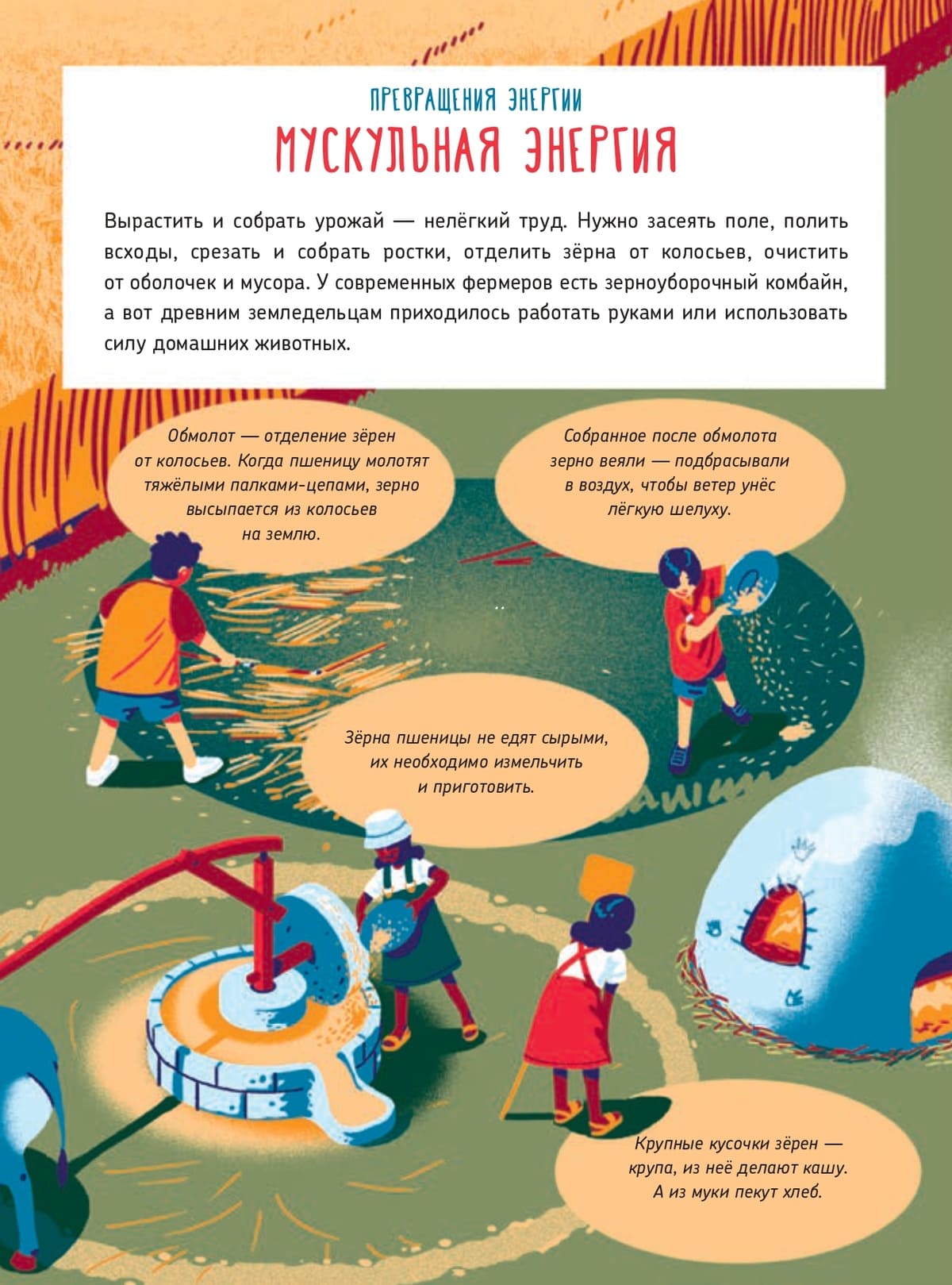Какие бывают сорта муки? Из чего состоит пшеничное зерно и когда возникли первые плавучие мельницы? Полноформатные иллюстрации, лаконичные и наглядные рисунки-схемы, романтические мифы и картины великих художников – новая книга Романа Беляева проще в том, что касается визуальных образов, но одновременно информативнее, чем его главный хит «Как работает маяк?». Читателю предлагают узнать и о видах энергии, и о воздушных змеях, и о термоядерных реакторах. Это яркий пример междисциплинарной познавательной литературы, где факты и теории из различных областей тесно переплетаются, как в калейдоскопе. Так, в главе «Будущее энергетики» можно отыскать маленькую заметку о цивилизации острова Пасхи. Конечно, споры об энциклопедичности и о том, насколько полезен принцип «всего понемногу», никогда не утихнут. Однако именно благодаря своей междисциплинарности книга не только даёт полноценное представление о мельницах, но и будит любопытство к самым разным сферам жизни, приоткрывая дверь в огромный мир гуманитарных и естественных наук.