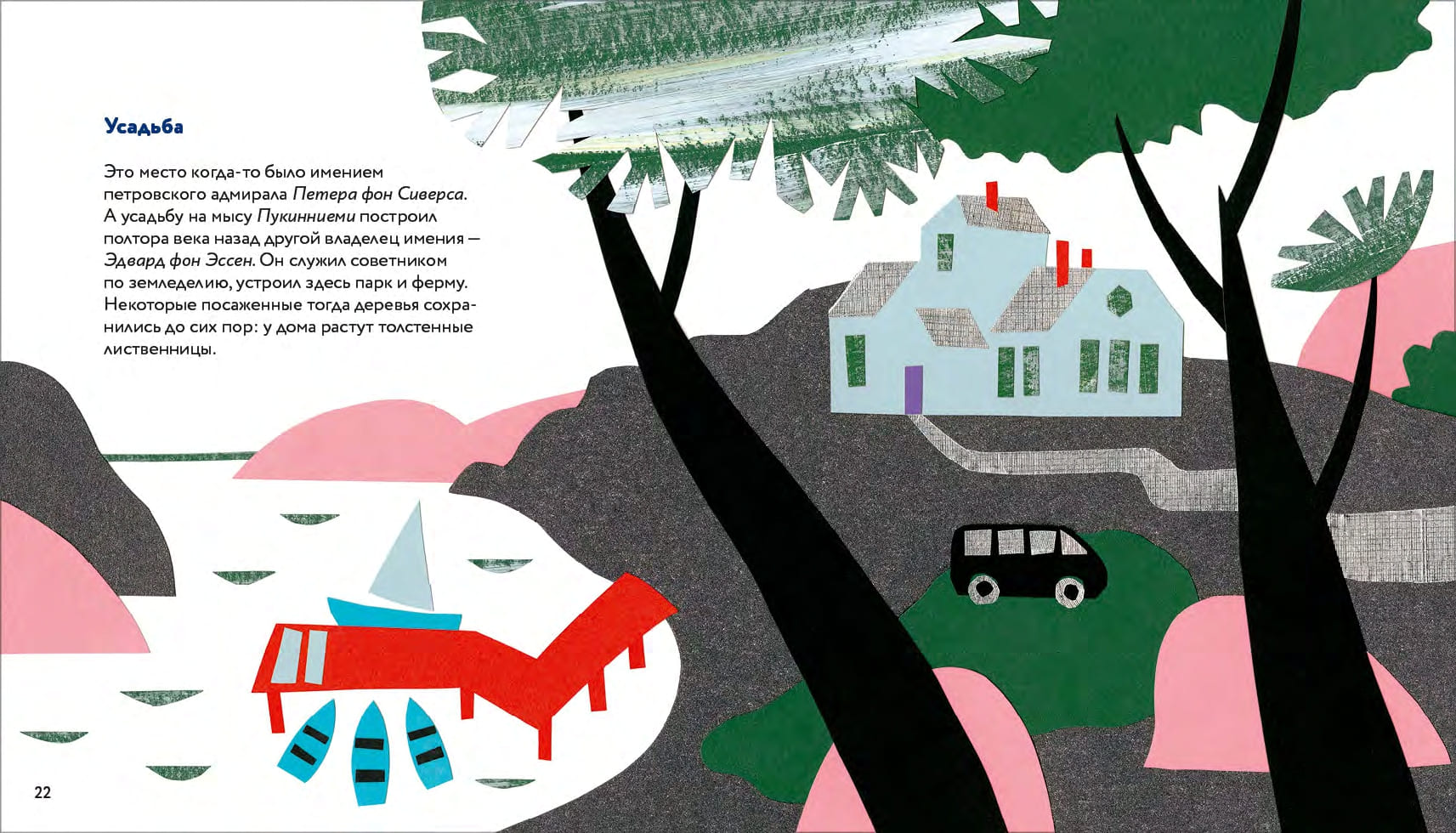В издательстве «Архипелаг» выходит история о путешествии по Ладожскому озеру –познавательный путеводитель в виде рассказа о том, насколько увлекательным и по-своему волшебным может быть семейный отдых в почти дикой природе. Лаконичные наблюдения мальчика Феди соседствуют здесь с атмосферными полноформатными иллюстрациями. За них Зина Сурова в 2021 году получила премию «Образ книги» в номинации «Авторская книга», а совсем недавно – специальный диплом конкурса «Художник Non/fictio№».