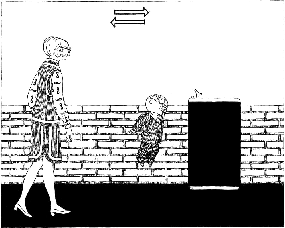 Проиллюстрированную известным художником Эдвардом Гори, которому в этом году исполнилось бы сто лет, книгу Флоренс Перри Хайд о мальчике Трихорне считают классикой американской детской прозы прошлого века. Хотя перед нами короткая новелла, где язык подчёркнуто лаконичен, а удивительная завязка не получает в финале какого-то однозначного вдумчивого объяснения. «Уменьшение Трихорна» – история иносказательная, отчасти абсурдно-юмористическая. Главный герой и взрослые вокруг него поначалу всерьёз не озабочены происходящим, порой напротив, стараются игнорировать необъяснимое. Папа предполагает, что Трихорн уменьшается специально, водитель автобуса принимает мальчика за его младшего брата, а учительница отправляет к директору, который тоже не горит желанием вникать в суть ситуации. С одной стороны, таким образом книга направлена против апатии взрослых и сверстников – повествование демонстрирует, как важно не формальное, а подлинное внимание к переживаниям и потребностям разных детей, к их зачастую будто бы несущественным трудностям. В определённой степени это и метафора развития человека в детском возрасте, ведь оно не всегда бывает линейным и многие его механизмы до сих пор не до конца изучены. С другой стороны, речь идёт об излишнем потребительстве самого Трихорна. Он увлечён коллекционированием не всегда нужных ему вещей из рекламы, а решение своей проблемы отыскивает тогда, когда замечает под кроватью давно заброшенную и забытую им настольную игру.