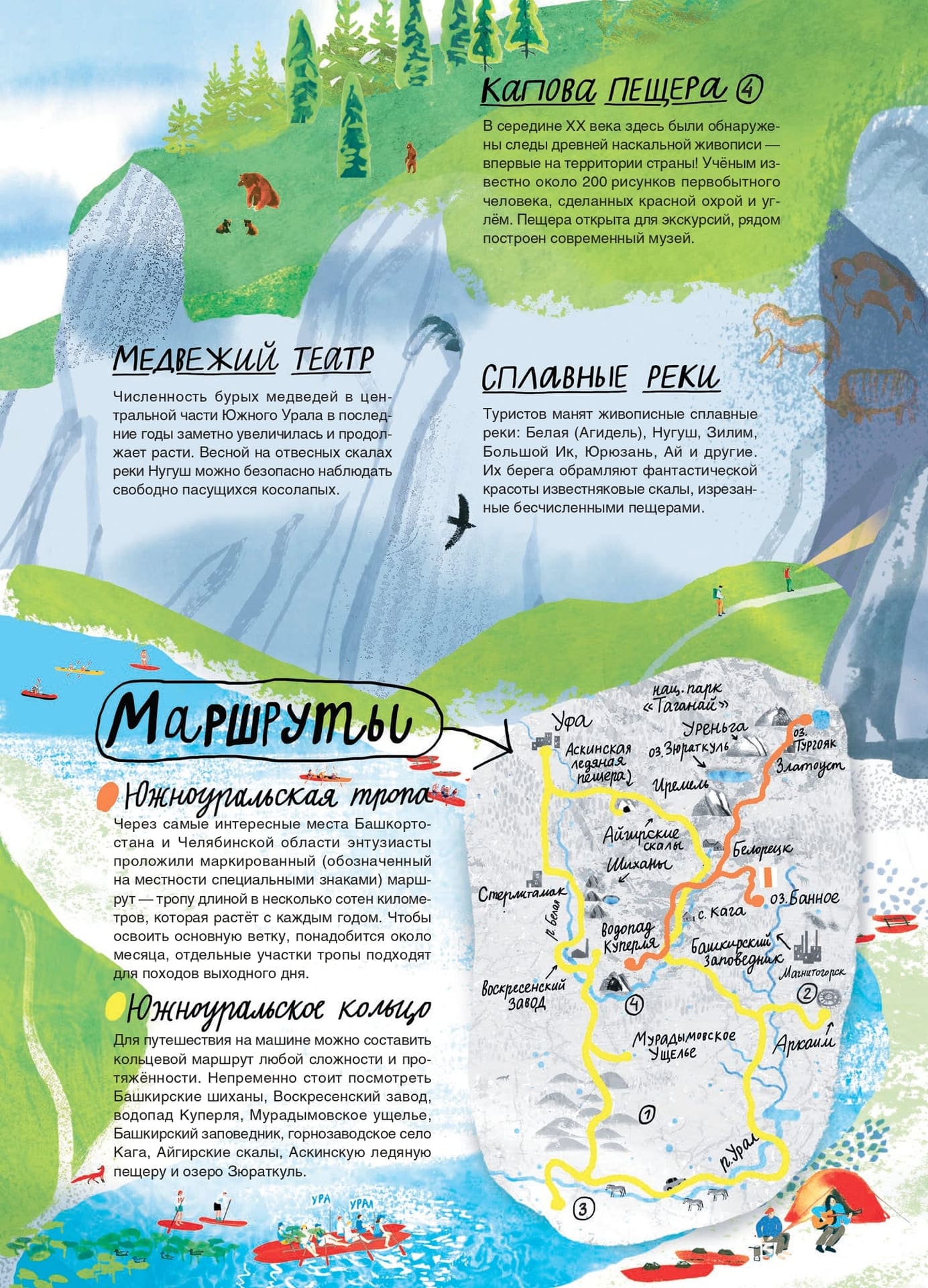 Сплавные реки, известняковые скалы, города-заводы и хребты-гиганты – Уральские горы, разделяющие Азию и Европу, объединяют степь и океан. Эту книгу, наглядно демонстрирующую многообразие Урала, написал путешественник и фотограф Олег Чегодаев, а проиллюстрировали художницы Аня и Варя Кендель, в 2023 году ставшие лауреатами Национальной премии в области детской и подростковой литературы за «Смотри: Байкал!», предыдущую работу в серии.