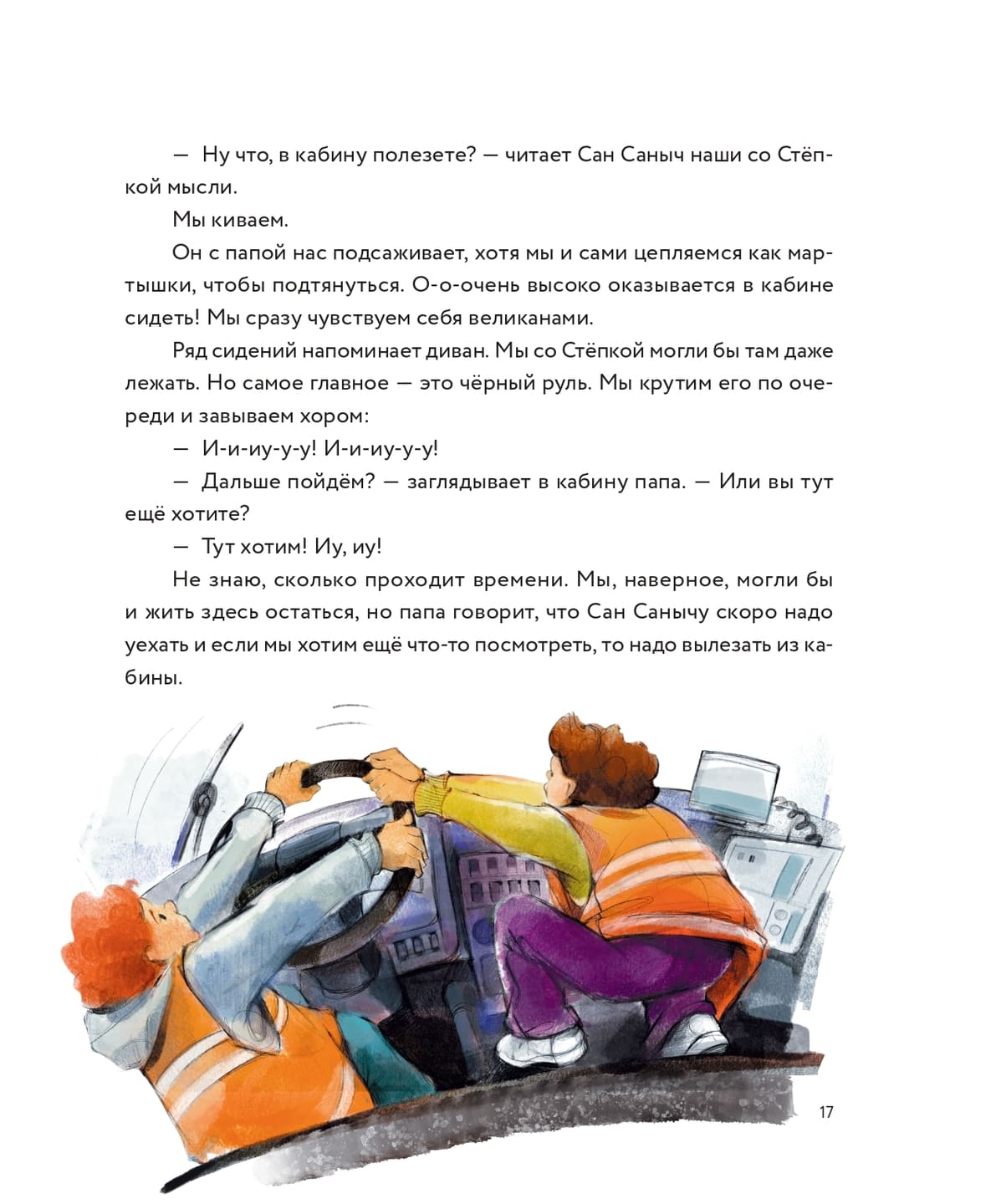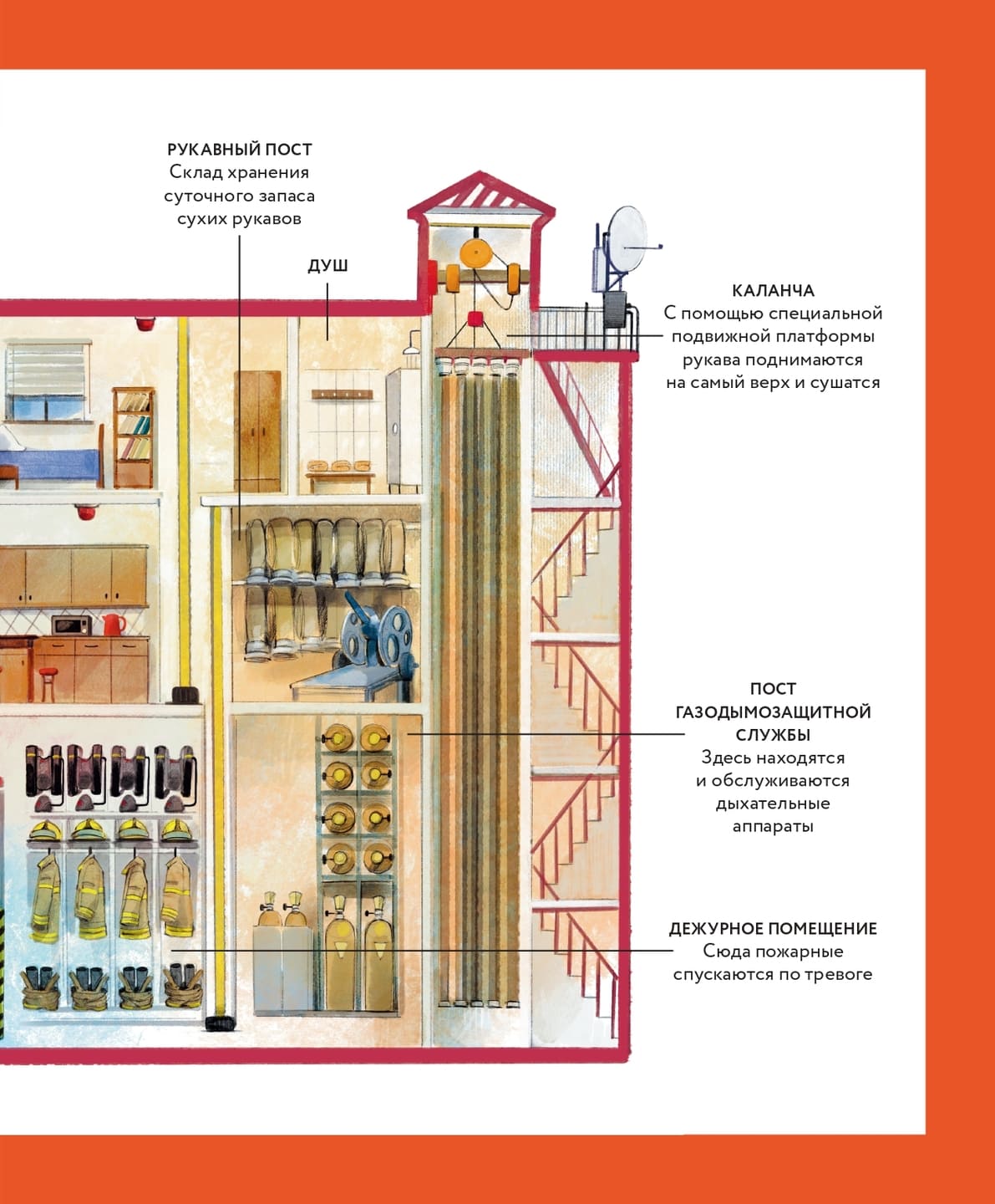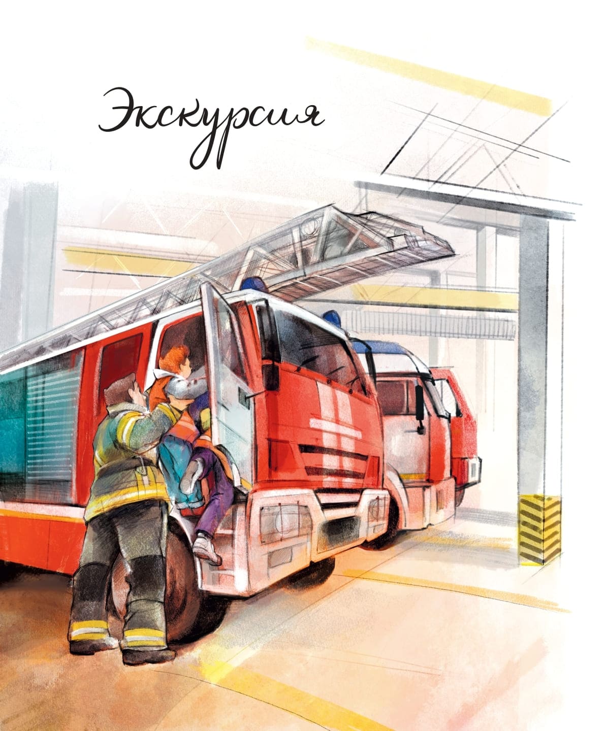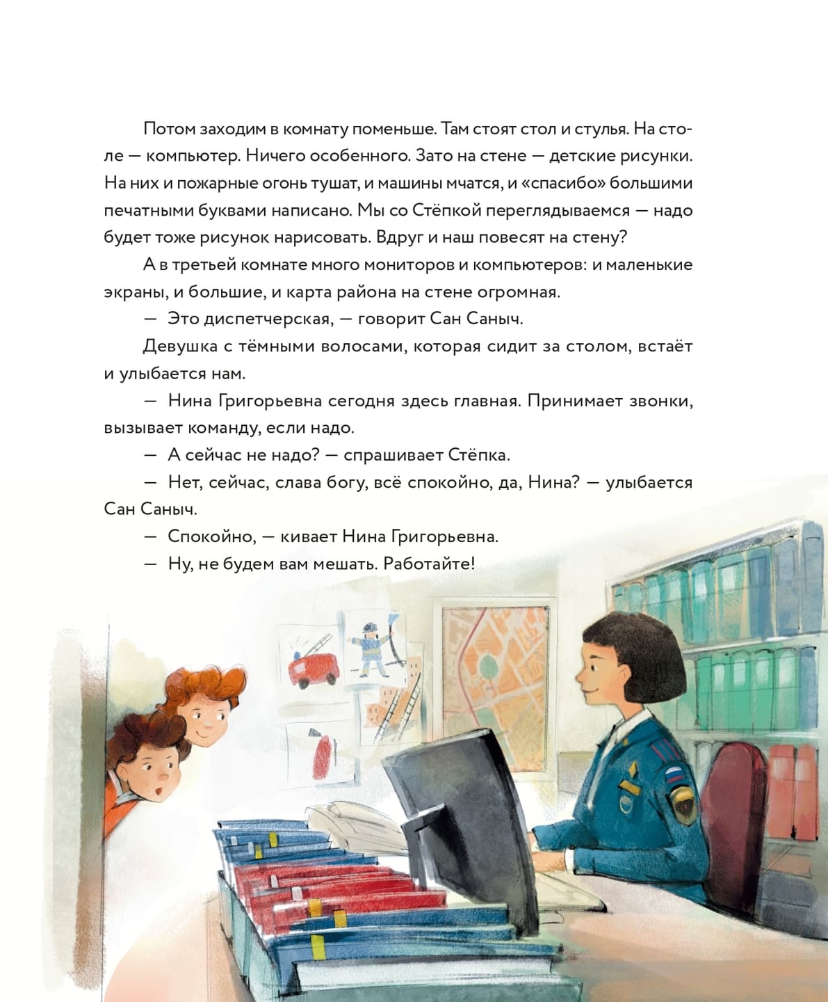 В книге Ольги Орловой забавная история двух друзей соседствует с познавательным экскурсом в профессию. Здесь можно найти подробные описания снаряжения пожарных, узнать об устройстве их служебных машин, схему типичной пожарной части. Читателям расскажут о правилах, например, о важном и строгом предписании надевать форму за двадцать одну секунду, а ближе к финалу появится краткая историческая справка о спасателях прошлого. В то же время перед нами книга с полноценным сюжетом – рассказ о мальчиках Яше и Стёпе, которые обретают профессию мечты. Благодаря Яшиному папе они вовремя понимают, насколько сильно реальная работа пожарного, где нужно методично тренироваться, отличается от игрового или киношного образа огнеборцев. Кроме того, заметную роль в книге играет тема династических профессий и внутренней преемственности поколений – уже после экскурсии Яша узнаёт от папы, что его прадед был пожарным в блокадном Ленинграде, когда эта работа, и без того всегда требующая недюжинной смелости, означала особый риск и подлинный героизм.